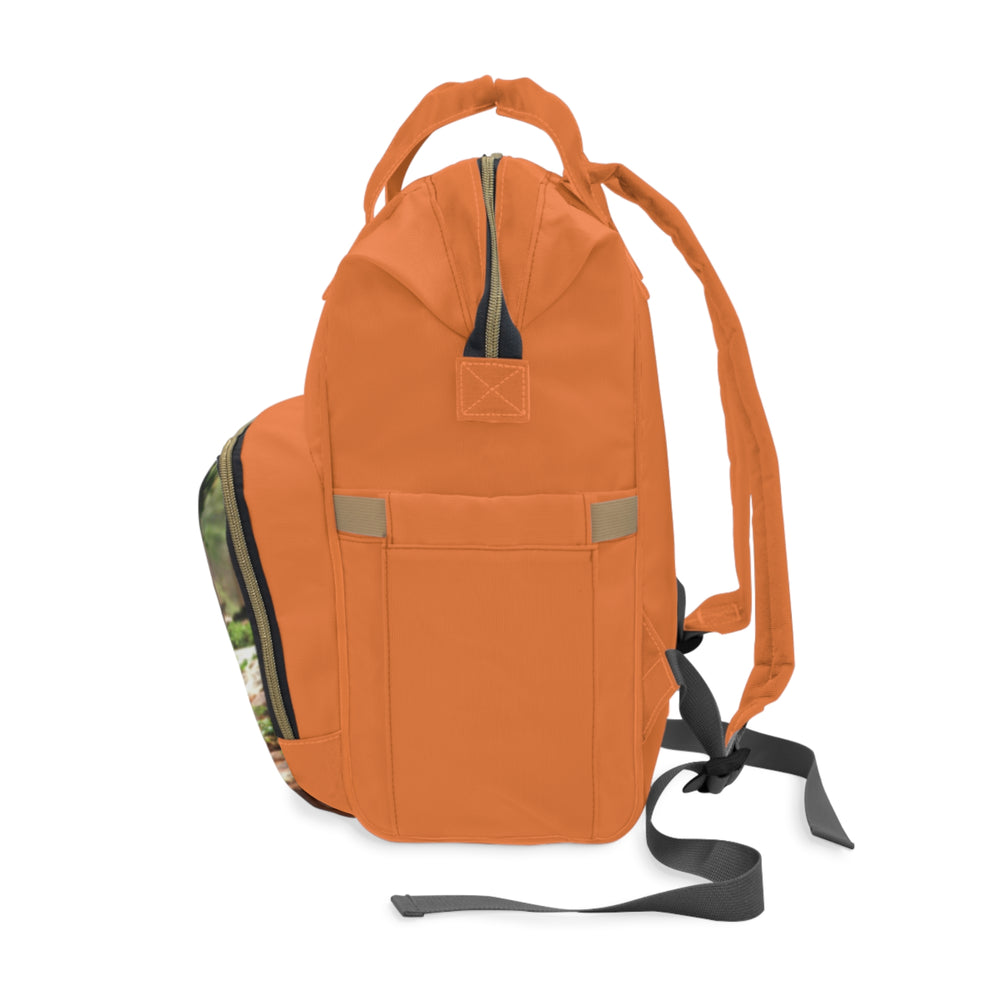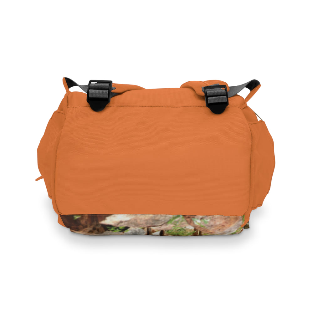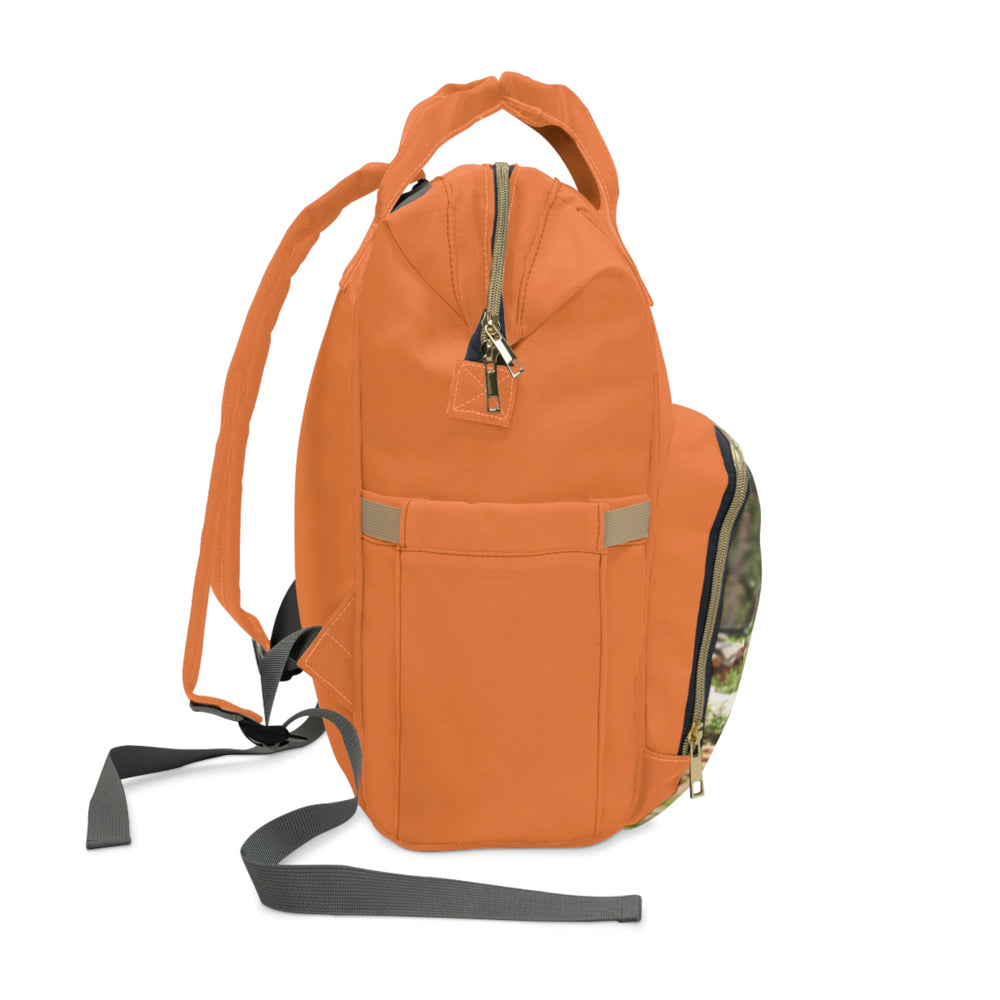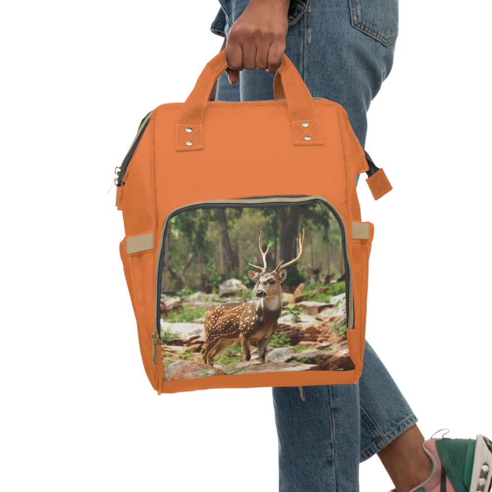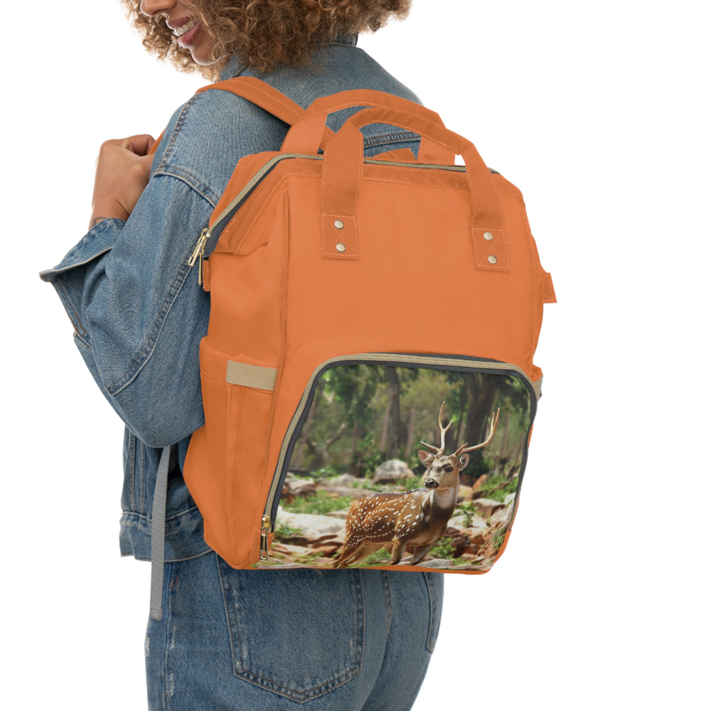 Stylish Deer Print Multifunctional Diaper Backpack in Rust Orange - Perfect for Nature-Loving Parents
